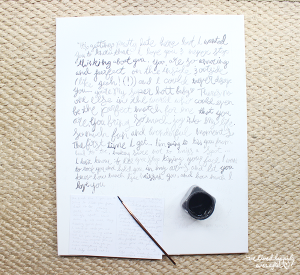 Then I super lightly wrote out the love letter onto it with a pencil.