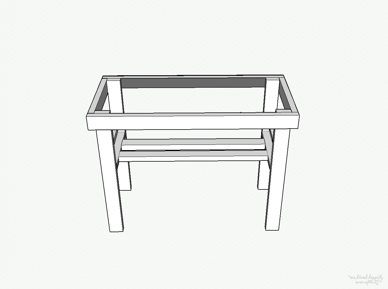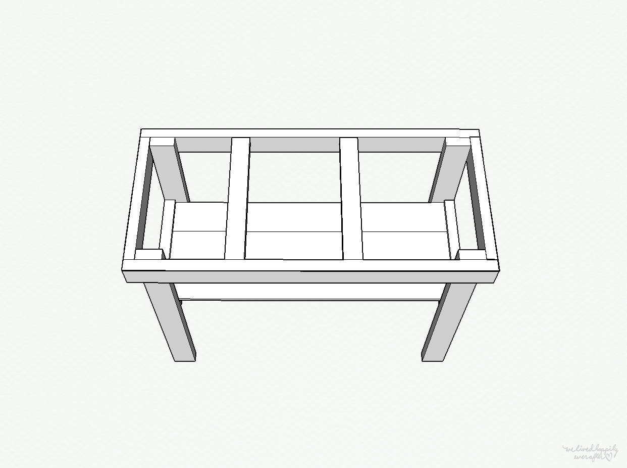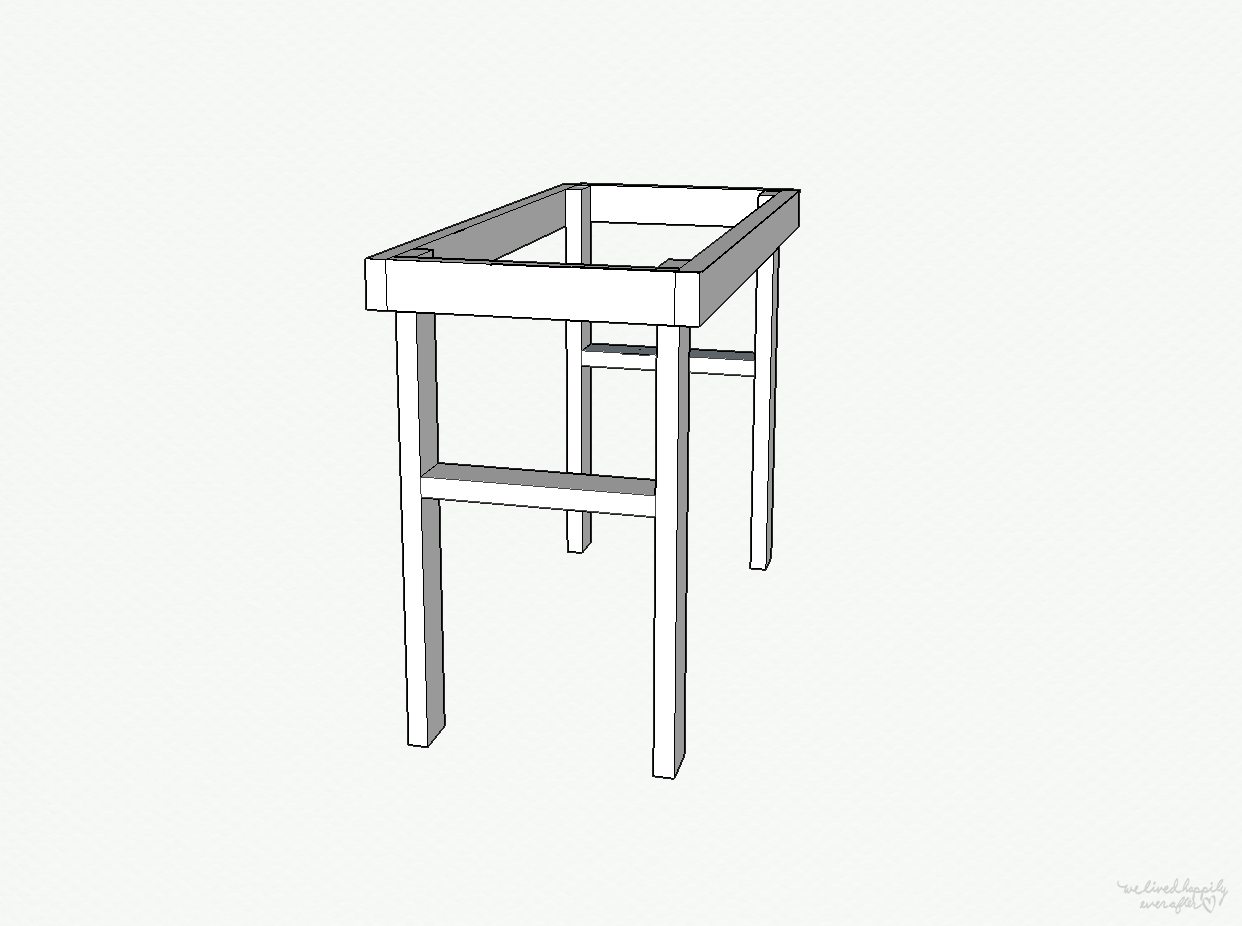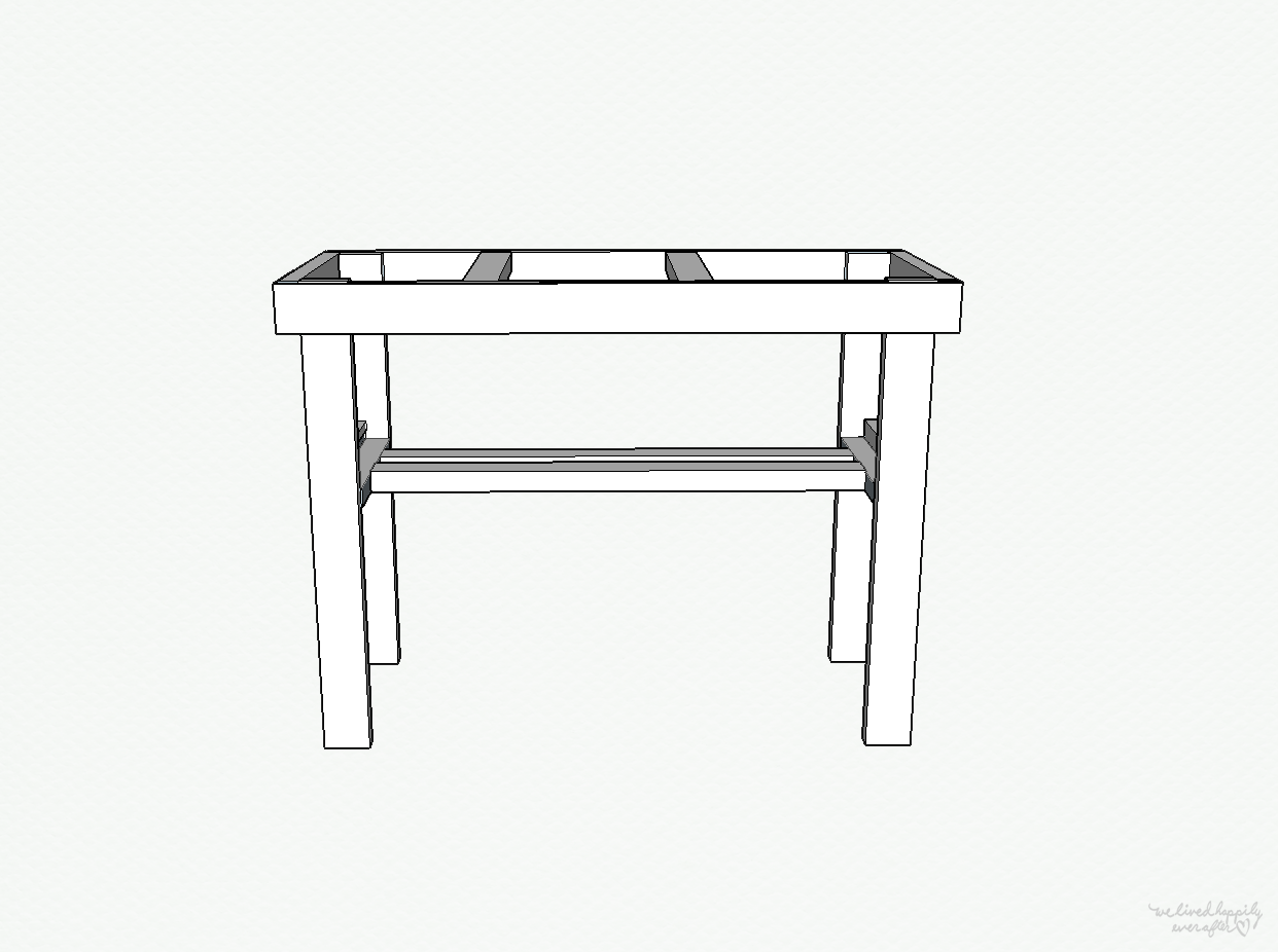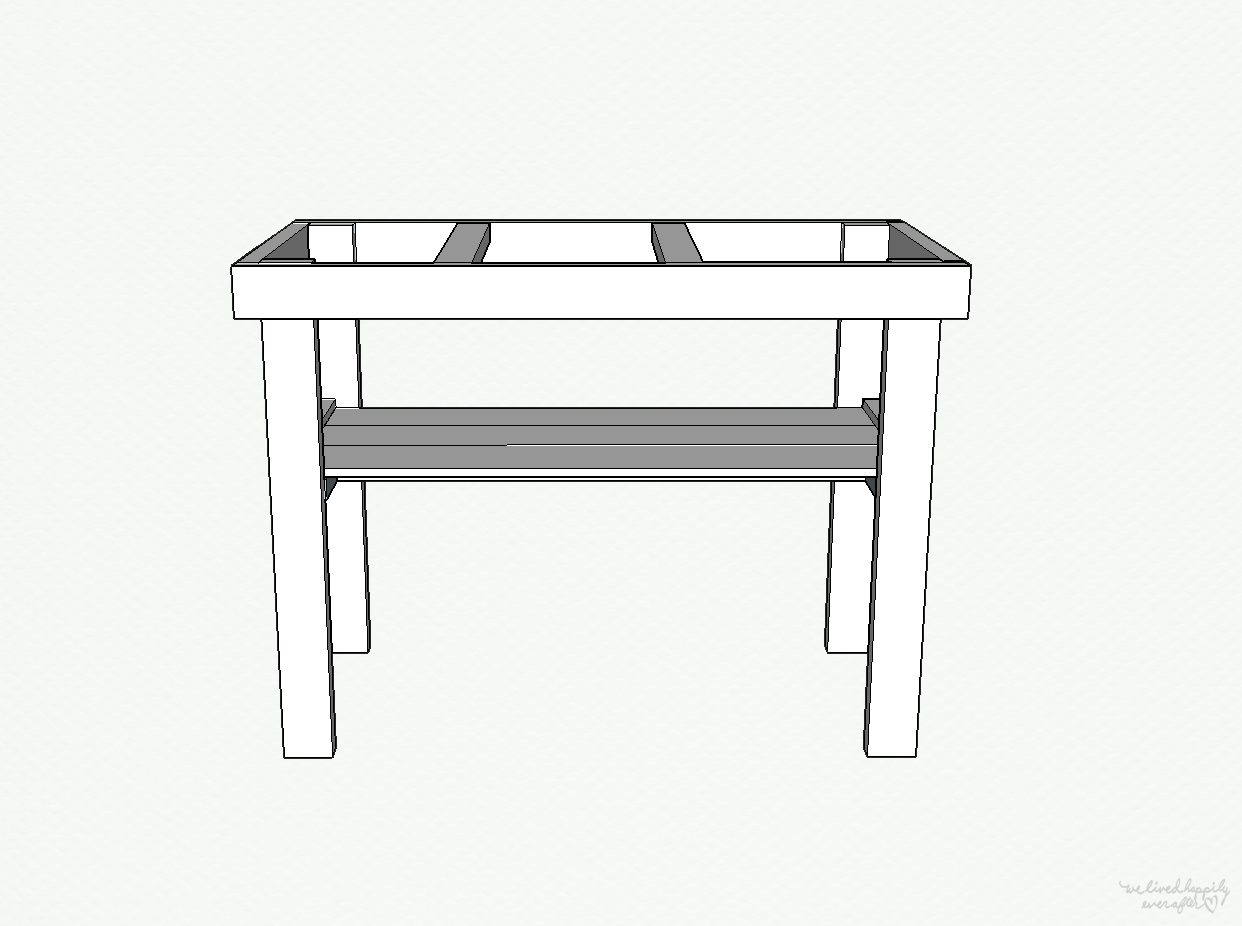 Screw the 20″ boards flush to the edges of the 36″ long legs.