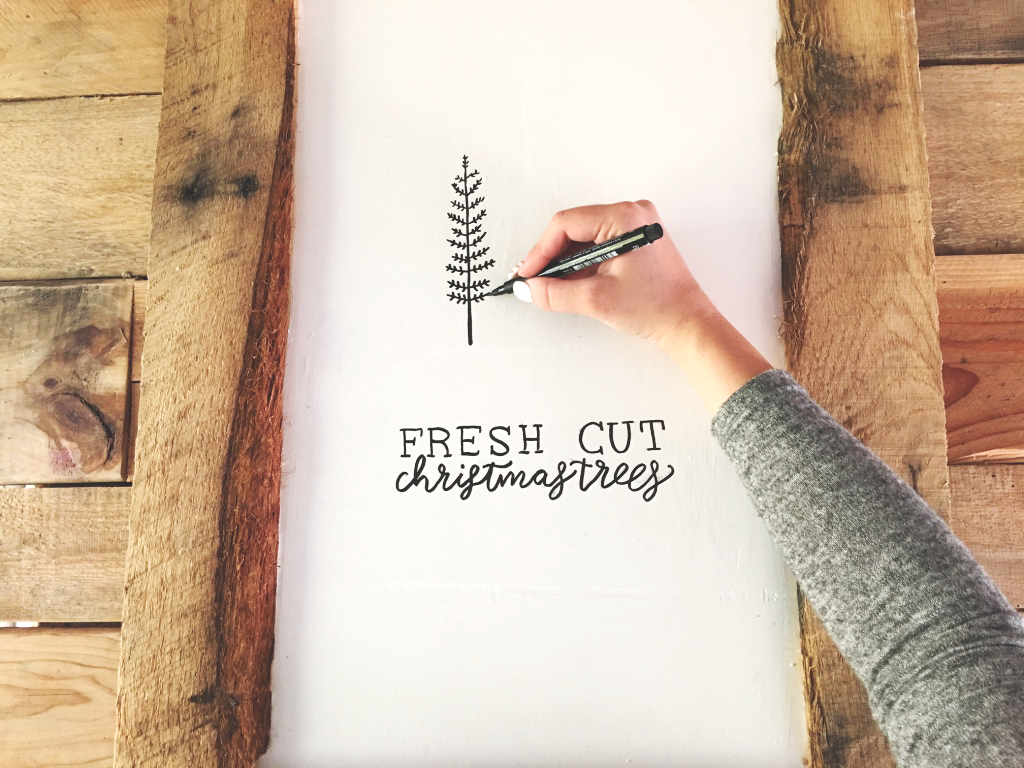 I am obsessed with pine. Must be my native Californian roots. So naturally, I love decorating with fresh greenery during the holidays. This year I wanted to do some creative Christmas signs throughout the house, and decided what better thing to illustrate than pine trees?