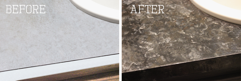 11. This is something I want to try in our bathrooms but we don't have laminate counters. Our counters are fake marble/granite. Does that make sense? could this process work on that?