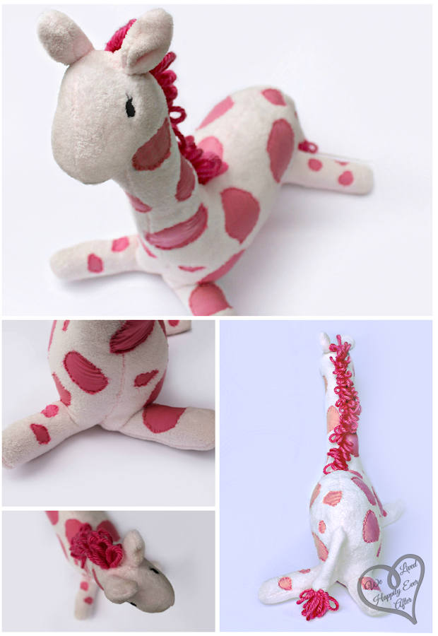 She is a bit lazy and lays down all the time… But that’s because I was lazy and didn’t want to have to figure out how to build a frame to support a big giraffe standing up! The result is still lovable though.