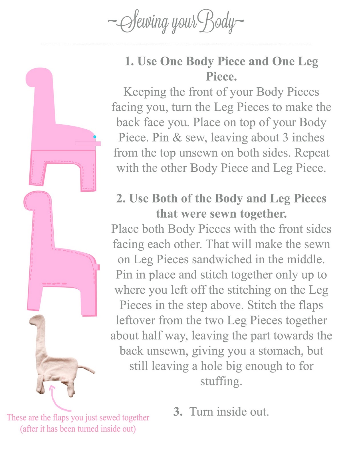 I'm making this for my son's room and it seemed like an easy DIY project until I got it all sewed up and turned right side out and was left with no directions for the flaps that hang below the body. Is it supposed to be stuffed separately and be hand sewn all the way across?