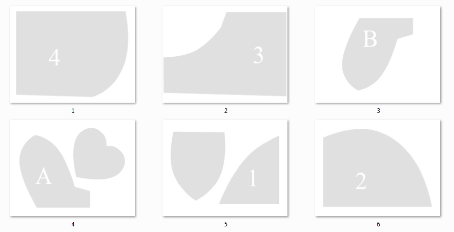 For the above step, we are now separating all of the pattern pieces into individual pages. To give you an idea of where to divide them, use the original page dimensions.